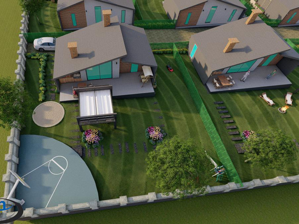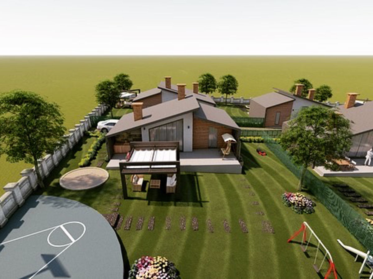 Ankara Mamak Lalahan'da devam eden projemizde 6 adet müstakil villadan oluşan sitemizde villalar; salon, 2 yatak odası, açık mutfak, WC-Banyo, büyük veranda bölümlerinden oluşmaktadır. Yaklaşık 500 m2 büyüklüğünde müstakil bahçeleri bulunmaktadır. Günlük yaşam ve hafta sonu evi olarak kullanılabilecek olan projemizde amacımız, insanların doğa ortamında yaşarken aynı zamanda evin içini de etkin kullanabilmesinin sağlanabildiği bir proje yaratmaktır. Kış aylarında evin içerisinde kolay ısınabilecek, soba yada şömine kullanabilecek, sıcak bir yuva ortamını oluşturmak, yazın ise büyük veranda sayesinde yaşam alanının dışarı taşıyarak, geniş ve kullanışlı bahçelerde hem kendi ihtiyaçlarını karşılayacak meyve sebze üretimini yapabilmek hemde yeşil alanda yaşamın keyfini çıkarmak için mekanlar yaratmaktır. Araçlarınızı evinizin önüne kadar getirebilmenize olanak sağlanmıştır. Yüksek ahşap tavanlarımız konseptimize uygun olarak farah ve doğal bir ortam sağlamaktadır.